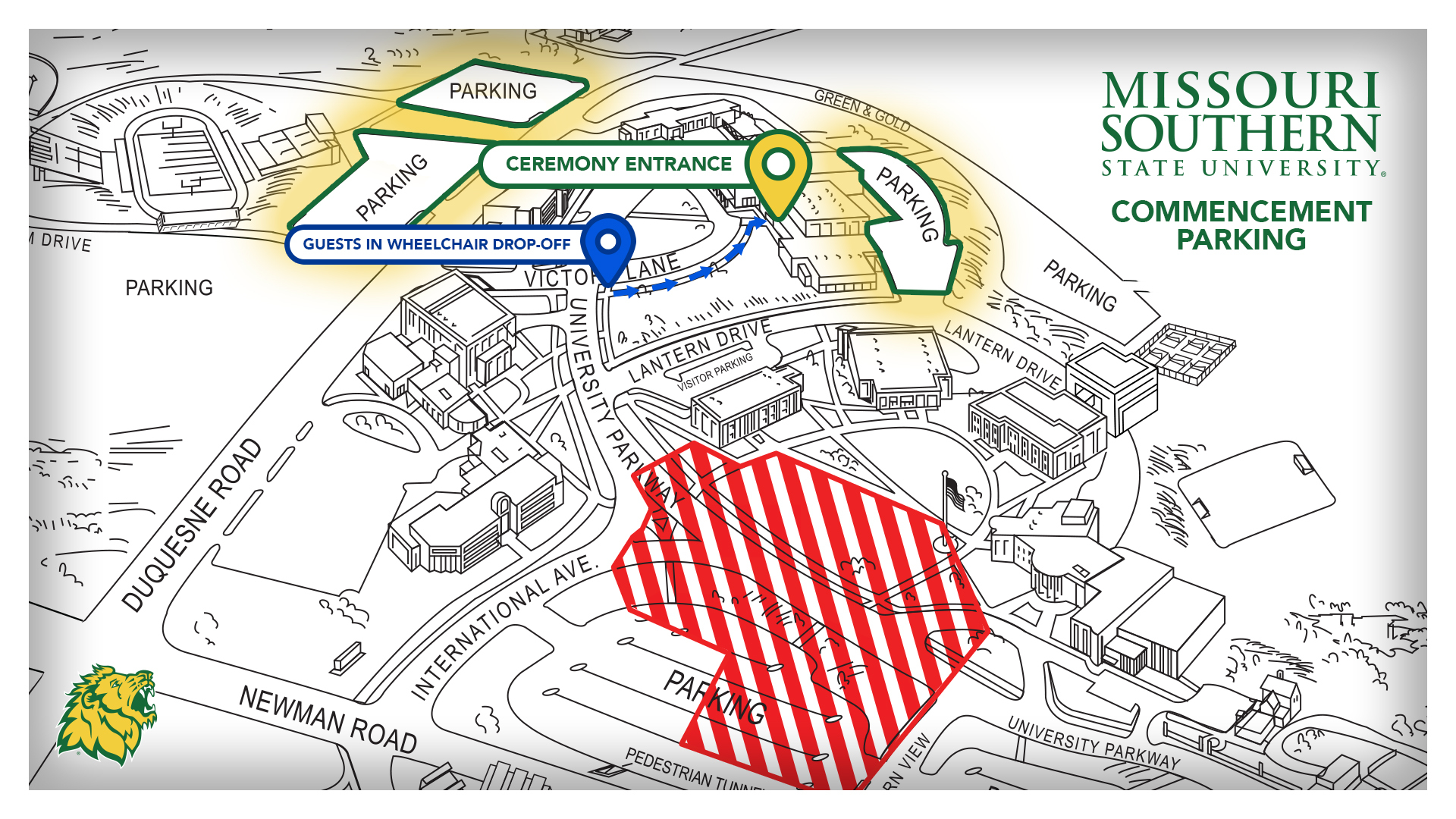 Reserved seating: Graduates who are hard of hearing, with limited mobility, mobility impaired, or need special seating accommodation should contact Chris Mitchell, Coordinator of Disability Services at disabilityservices@mssu.edu at least one week before the commencement ceremony.